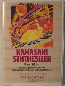 The Kawasaki Synthesizer is a musical software tool for the Commodore 64 created in 1983 by Japanese jazz musician, Ryo Kawasaki. The first of four music programs created by Kawasaki, Kawasaki Synthesizer (1983)[3] was followed by Kawasaki Rhythm Rocker (1984),[3] Kawasaki Magical Musiquill (1985),[4] and Kawasaki MIDI Workstation in 1986 (his only software title intended for professional use instead of personal or educational use).[5]