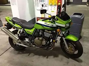 The Kawasaki ZRX1200R is a standard/naked motorcycle and was manufactured in Japan from 2001 until 2007. It was sold in the US until 2005[6] and in Europe until 2007. It was updated in 2008 with a six-speed transmission, fuel injection and was sold exclusively in Japan as the ZRX1200 DAEG model until 2016.[7][8] It is an evolution of the ZRX1100, a stylized replica of the "Eddie Lawson Replica" KZ1000R[9] sold in 1982,[6] a motorcycle made famous by the superbike racing champion of the same name.[10] With the ZRX1200R, Kawasaki's goal was to produce a motorcycle with the performance of a modern motorcycle while retaining a design similar to the original Eddie Lawson Replica.