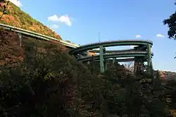 The Kawazu-Nanadaru Loop Bridge is a double spiral bridge with a height of 45 m (148 ft), 80 m (260 ft) in diameter, and a total length of 1,064 m (3,491 ft).[1][2][3]
