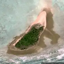 There is one small, barren and uninhabited islet, Ngaruangel Island, in the center of the eastern rim of the atoll, at its easternmost point. Ngaruangel Island is 200 m (660 ft) long north–south, and from 65 m (213 ft) wide in the south to 105 m (344 ft) in the north. There is a sand spit attached to the island, pointing southwest into the lagoon, 75 m (246 ft) long and 20 m (66 ft) wide. The total area of the island is 1.5 ha (3.7 acres).