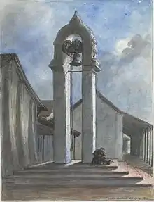 The Kayman's Gate bell purportedly dates back to the 16th century, where it originally hung in a Portuguese church dedicated to Saint Francis in the Royal City of Kotte.[5] Although Kotte was abandoned in 1565, the Dutch later reoccupied it and found a bell amidst the ruins of the church. This bell was relocated to a newly-constructed bell tower at Kayman’s Gate, where it was used as a curfew bell ‘to mark the closing of the Castle’s gates and lights out’. Following the demolition of the fort's walls, the bell was used to summon the worshippers to prayer and praise at the Wolvendaal Church, with the bell tower becoming part of the church's property.[6]