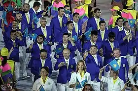 Kazakhstan competed at the 2016 Summer Olympics in Rio de Janeiro, Brazil, from 5 to 21 August 2016. It was the nation's sixth consecutive appearance at the Summer Olympics in the post-Soviet era. The National Olympic Committee of the Republic of Kazakhstan fielded a roster of 104 athletes, 55 men and 49 women, to compete across seventeen different sports at these Games, the smallest Summer Olympic team since the nation's debut in Atlanta 1996.[2] Moreover, Kazakhstan did not send teams in any of the team sports for the first time in twenty years. Track and field accounted for the largest number of athletes on the Kazakh squad, with 25 entries. There was a single competitor each in slalom canoeing, track cycling, fencing, and table tennis (for the first time after an eight-year absence).