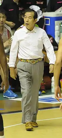 Kazuo Nakamura (中村 和雄, Nakamura Kazuo, born December 4, 1940) is a former professional basketball head coach for Hamamatsu, Akita and Niigata and a former college basketball head coach for Akita Keizaihoka University in Japan.[1][2] Nakamura always said to players, "Play basketball with all your heart."[3] He admires Mike Krzyzewski and Bob Knight. Nakamura also served for the San Antonio Silver Stars as a scout in Asia. He currently teaches amateurs in Akita prefecture.