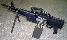 The kbkm wz. 2003 (Polish: karabinek maszynowy wzór 2003, English: machine carbine pattern 2003) is a light machine gun of Polish origin, designed in the early 2000s to replace the 7.62×54mmR PKM series of support weapons. The construction if fully compatible with all NATO standards. There were 2 versions developed of this gun: kbkm. 2003S - standard version and kbkm. 2003D - version for airborne or assault units with shorter barrel. Overall it was put into tests and not purchased by the Polish Army.