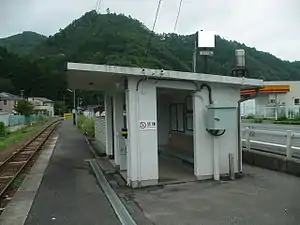 Kebaraichi Station has a single side platform serving a single bi-directional track. There is no station building, but only a waiting room built on the platform. The station is unattended.