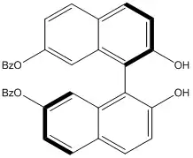 The Brenna group developed a synthesis for a binol analog, shown below, which can be resolved into its enantiomers quite easily and used as a chiral auxiliary for stereoselective Keck allylations, showing in some cases improved enantiomeric excesses of up to 4% over the (R)-BINOL catalyzed allylations.[14] Additionally, the developed auxiliary also showed an NLE similar to the classic BINOL, allowing enantio-impure quantities to be used.
