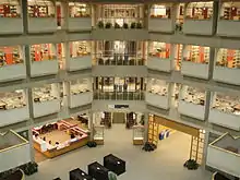 The main Scott Library is five stories tall and features thousands of books, periodicals, and other resources. There are designated quiet study areas as well as several small conference rooms which students can reserve to work on group projects.