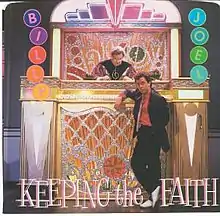 "Keeping the Faith" is a song by rock singer-songwriter Billy Joel, released from his 1983 album An Innocent Man. "Keeping the Faith" is the last track and final single from the album. The cover for the single shows an image of Joel and the judge (character actor Richard Shull) in the "jukebox" courtroom from the video.