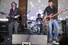 ![]() Nuttall (at left), performing in Transport at The Zoo, Brisbane, October 2006 | |