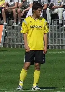 At the end of December 2009, Honda transferred to Russian club CSKA Moscow.[12] Honda signed a 4-year contract.[13] The transfer fee was undisclosed, but VVV-Venlo was said to be very content with the fee as it almost matched their asking price; it is believed to be in the region of €6 million.[10] Honda made his debut for CSKA in the UEFA Champions League match against Sevilla.[14] In the second leg in Seville, he scored the winning goal through a direct free kick for CSKA after having set up the first goal for Tomáš Necid. This secured a 2–1 (3–2 aggregate) victory to send the club to the quarterfinals, making Honda the first Japanese player to be in the quarter-finals as well as the first to score in the knock-out stages. Honda scored his first league goal on 12 March 2010, in the home match against Amkar Perm. He scored the goal in the third minute of injury time, slotting home a pass from Necid with his left. With the goal, he secured the win for CSKA Moscow.
