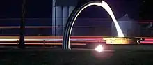 Local artist James Darling designed the local water feature, which celebrates the cycle of water through the Australian landscape and the region's widespread water irrigation.
