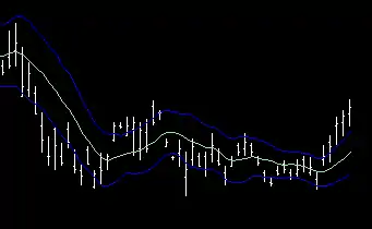 The trading strategy is to regard a close above the upper line as a strong bullish signal, or a close below the lower line as strong bearish sentiment, and buy or sell with the trend accordingly, but perhaps with other indicators to confirm.