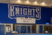 ![]() KVHS's interior lobby displaying its new team name "Blue Knights" along with motto "Crusading for Good" | |