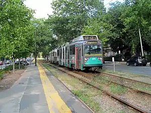 ![]() Inbound train passing the outbound platform at Kent Street in 2016 | |||||||||||