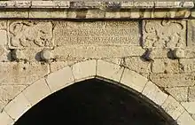 The castle also used man-made fortifications, including ditches and thick stone walls. Because Muslim armies started to move with siege weapons such as siege engines, Frankish castles started adapting by building thicker and more solid walls.[11] A "Byzantine ditch", a ditch or moat to keep siege engines at a safer distance, was constructed near the castle. There is another ditch near the town which is much deeper but less wide, to the west of the castle (now almost completely filled-in).[12] It also has a glacis, an artificial slope made of steep, slippery masonry at the base of the walls that hindered attackers in their attempt to climb the walls and kept them exposed for longer to the defenders.[13]