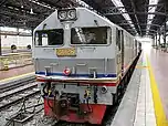 The MR began to modernize the equipment with the ordering of diesel locomotives and railcars to replace steam hauled services, and the first diesel locomotive entered service in 1957. The railcars entered service in 1960, initially on short haul services.[2] Rapid services were introduced later, cutting travel times from Singapore to Kuala Lumpur down to six hours, which was competitive at the time.[3] MR and later KTM continued ordering more diesel locomotives through the decades, rendering the old steam locomotives redundant. The last steam locomotive was withdrawn from service in 1974.