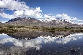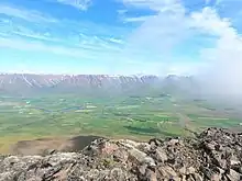 Mount Kerling (Icelandic pronunciation: [ˈcʰɛ(r)tliŋk], "Old Hag") is the highest mountain (1538 m) in the District of Eyjafjarðarsveit, in the northern part of Iceland. Its structure is mainly basaltic rock, but the uppermost part is rhyolite, which extends to Mts Súlur nearby and all the way to the lower slopes of Mt. Vindheimajökull [ˈvɪntˌheiːmaˌjœːkʏtl̥] to the north of valley Glerárdalur.[1] It is considered an easy climb with excellent panoramic views on a fine day.[2]