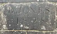 There is a carved inscription in the centre of the inside of the parapet on the downstream side of the bridge recording that it was built by D Jones and opened in 1828.[27]