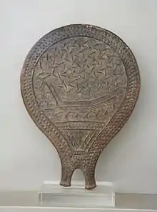 Some of the important artifacts of this culture are the so-called "Frying pans" – shallow circular vessels or bowls with a decorated base. They are found especially during the Cycladic Grotta-Pelos and Keros-Syros cultures. It has been suggested that when filled with water they were used as mirrors.