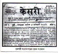 Kesari (Marathi: केसरी Sanskrit for lion) is a Marathi newspaper which was founded on 4 January 1881 by Lokmanya Bal Gangadhar Tilak, a prominent leader of the Indian Independence movement. The newspaper was used as a spokes piece for the Indian national freedom movement, and continues to be published by the Kesari Maratha Trust and Tilak's descendants.[1][2][3]