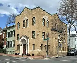 In 1910, six local Jewish merchants organized the Georgetown Hebrew Benevolent Society, which began to conduct religious services above a storefront on M Street, NW.[2] A year later, this kernel, now numbering 50 families, founded Kesher Israel Congregation,[3] which thus became the seventh synagogue organized in the nation's capital.[4] In 1915, the congregation acquired, renovated, and began to meet in a premises at 2801 N Street, NW. The current synagogue building, which was constructed in 1931 on that site[3][5] with a construction budget of $28,000,[6] is a contributing property to the Georgetown Historic District, a National Historic Landmark, listed on the National Register of Historic Places.[5]