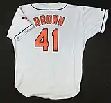 Masterful during the National League Division Series against the Houston Astros,[2] San Diego won both of Brown's starts by a 2–1 score.[3] As the Game 1 starter opposing Randy Johnson, he allowed no runs in eight innings and struck out 16 Astros, a career-high, and second to that point in MLB playoff history only to Bob Gibson's 17-strikeout performance in the 1968 World Series.[4]