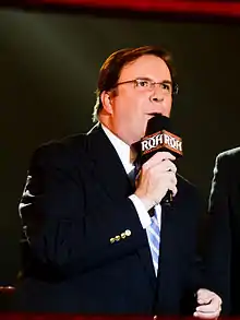 Kevin Foote[3][4] (born May 9, 1967) is an American sportscaster, radio host, and professional wrestling color commentator, executive, manager, pundit, and former ring announcer, better known by his ring name Kevin Kelly. Foote has worked as an English-language commentator for New Japan Pro-Wrestling (NJPW) since 2015. He previously worked for WWE from 1996 to 2003, Major League Wrestling in 2004, and Ring of Honor (ROH) from 2010 to 2017.