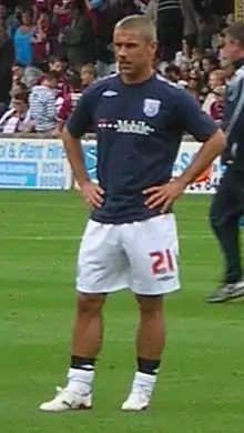 Phillips joined West Bromwich Albion despite strong interest from Sunderland, where his former strike partner Niall Quinn had recently become both chairman and manager.[64][65] He cited a reluctance to move his family and home for a third time in three years as a major factor in his decision.[66] He scored 22 goals in his first season with West Brom, including two hat-tricks, one in a 5–1 win at Ipswich Town and the second in a 7–0 defeat of Barnsley on the final day of the regular season that confirmed Albion's place in the play-offs.[67][68] Phillips scored twice in the first leg of the play-off semi-final against Wolverhampton Wanderers, and headed the only goal of the second leg to ensure their progression to the final, in which they lost 1–0 to Derby County.[67][69]