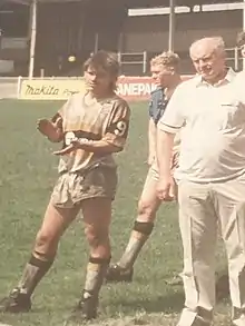 Rudd, a hooker, started his professional career as a player with Castleford in the late 1980s'.[4] He was coached by the great Dennis Hartley. During his studies at Nottingham Trent University he played for the University student side, Midlands Universities (coached by the founder of Scotland Students R.L Malcom Reid), Nottingham City[1][5] as well as for the Cambridge Eagles, playing in the fledgling London League, during his industrial placement year.[3]: 150 After completing his studies in Nottingham, he returned to Garforth and represented Doncaster and Hull KR, as well as local amateur Club Lock Lane. From 1996, once he moved to Dunbar, on the east coast of Scotland for his first major engineering post,[6]: 182 he played for several Scottish sides including the first club side in Scotland, the Forth & Clyde Nomads in 1996 and as captain[7] for the Edinburgh Eagles in 1998 and 1999[6].: 203 He continued his studies in Scotland, graduating with an MBA at Edinburgh University in 1998. In 1996 he represented the Scottish National Student team at the Halifax Student World Cup, coached by former Welsh International John Risman, where Rudd was named player of the tournament for the Scottish side.[8] He represented the Scottish team again at the 1999 Independent Student Rugby League World Cup[6]: 205 as well as playing for Scotland ‘A’. During the 1990s and 2000s he had played for so many different teams he became known in the rugby league world as 'a man who has played for more teams and countries than anyone known in the history of rugby league' as was quoted in Dave Hadfield's in book, Learning Curve: The story of Student Rugby League[3].: 150