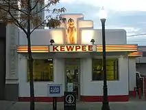 - Kewpee Hamburgers Downtown – located in Lima, Ohio and also known as Kewpee Downtown, it opened under the ownership of Stub Wilson in 1928 as a Kewpee franchise.[20] The architecture of the Kewpee is Streamline Moderne, featuring porcelain enamel and stainless steel. The building was approved for listing on the National Register of Historic Places in 1982 but was marked as Owner Objection and does not appear on the register.[21]