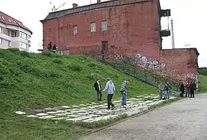 Regular celebrations are held near the object. Among them the annual internationally recognised Sysadmin Day on the last Friday in July. Before 2010 Yekaterinburg technicians were gathering at separate places, and since 2010 Yekaterinburg authorities granted official permission for the event to be held near the Keyboard Monument with support from IT companies.[10] There are "sysadmin competitions" between participants: they throw defunct PC mice to reach maximum distance and also throw such mice (with their "tails" cut out) within an empty distant computer case used as basket. Additionally, they powerlift a bundle of unused HDDs.[11] In 2016 during such an event a memorial plaque was set up at the monument to honour Eugene Zorin, the Yekaterinburg FidoNet organiser and Internet pioneer who died recently.[12] In the end of April, the "Keyboard Subbotniks" are also held, when people are cleaning and re-painting the monument, and "sports competitions" also take place. Two volunteers from the USA took part in the procedure in 2017, local press reports.[13]