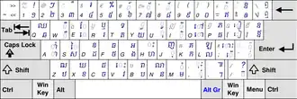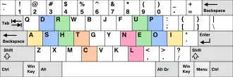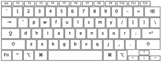 Mixed hardware-to-software keyboard extensions exist to overcome above discrepancies between functional and visual layouts. A keyboard overlay[24] is a plastic or paper masks that can be placed over the empty space between the keys, providing the user with the functional use of various keys. Alternatively, a user applies keyboard stickers with an extra imprinted language alphabet and adds another keyboard layout via language support options in the operating system.[25] The visual layout of any keyboard can also be changed by simply replacing its keys or attaching labels to them, such as to change an English-language keyboard from the common QWERTY to the Dvorak layout, although for touch typists, the placement of the tactile bumps on the home keys is of more practical importance than that of the visual markings.