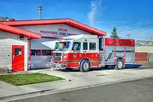 Engine 1 is a Rosenbauer EXT Type 1 engine. It can seat 6 people and carries 1000 gallons of water and it can pump 1500 GPM. It is the first piece of apparatus used for medical aids, vehicle accidents, rescues, and structure fires. It carries 1,000 ft. 3" supply line, 650 ft. 1-3/4", 800 ft. 2-1/2", 100 ft. 1-1/2", 25 ft. 1-1/2" It carries tools and rope for low angle rope operations, Hurst Extrication tools, stabilization tools, and airbags.
