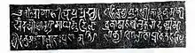 The inscription is written in Sanskrit in three lines. The style of the characters supports a date in the tenth century CE.