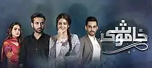 Khamoshi (Urdu: خاموشی, lit. 'Silence') is a Pakistani romantic drama television series aired on Hum TV during 2017–2018. It is produced by Momina Duraid under their banner MD Productions. It stars Zara Noor Abbas, Bilal Khan, Iqra Aziz and Affan Waheed. It received critical acclaim and was one of the most watched Pakistani series of 2017.[1][2][3][4]
