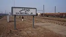 Khanewal Junction railway station (Urdu and Punjabi: خانیوال جنکشن ریلوے اسٹیشن) is located in the city of Khanewal, Punjab province of Pakistan.[1] It is a major railway station of Pakistan Railways and the junction of Khanewal-Wazirabad branch railway line. It is the stop of all Express trains.