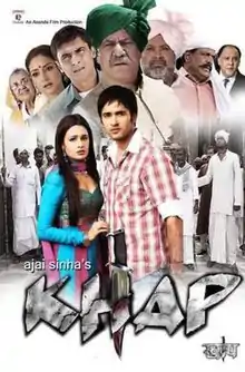 Khap is a 2011 Hindi film starring Yuvika Chaudhary, Om Puri, Govind Namdev, Manoj Pahwa, Mohnish Bahl.[1] Directed by Ajai Sinha, the film is a socio-political drama based on the Manoj-Babli honour killing case and Khap Panchayats in villages of Haryana, Rajasthan and Uttar Pradesh, which order honour killing to prevent marriages within the same gotra.[2][3][4]
