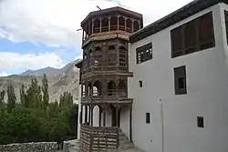 The palace was constructed with the help of Kashmiri and Balti craftsmen.[6] Being on the border of multiple regions, the structure of the palace has Tibetan, Kashmiri, Ladakhi, Balti, and Central Asian influences.[13][14]
