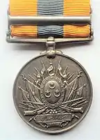 The Khedive's Sudan Medal was a campaign medal awarded by the Khedivate of Egypt to both Egyptian and British forces for service during the reconquest of the Sudan, the final part of the Mahdist War. Established 12 February 1897 by Khedive Abbas Hilmi Pasha, this medal was initially to commemorate the reconquest of the Dongola province in 1896.[1] It was subsequently authorised for later campaigns and actions until 1908. The medal was awarded with fifteen different clasps.[2]