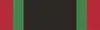 The medal hangs from a straight bar suspension, the 32 millimetre wide watered ribbon being black with thin red and green stripes on each side.