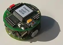 The Khepera is a small (5.5 cm) differential wheeled mobile robot that was developed at the LAMI laboratory of Professor Jean-Daniel Nicoud at EPFL (Lausanne, Switzerland) in the mid 1990s. It was developed by Edo. Franzi, Francesco Mondada, André Guignard and others.