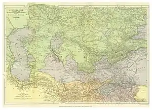 By 1868, the Russian conquest of Turkestan had captured Tashkent and Samarkand, and gained control over the khanates of Kokand in the eastern mountains and Bukhara along the Oxus River. This left a roughly triangular area east of the Caspian, south of the and north of the Persian border. The Khanate of Khiva was at the north end of this triangle.