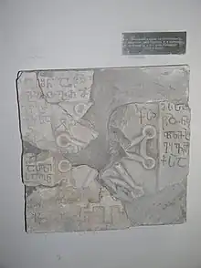 ![]() A church inscription from Khopi. Now on display at the Sukhumi museum. | |