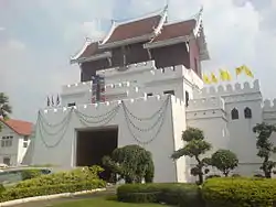 Nakhon Ratchasima continued to be an important political and economic center in the northeastern region under the Monthon administrative reforms of the late-19th century. In November 1900, the Royal State Railways of Siam began operation of the Nakhon Ratchasima Line from Bangkok with Korat Station as its terminus. It was officially opened on 21 December 1900 by King Chulalongkorn.[3] The Ubon Ratchathani Line to the town of Warin opened 1 November 1922. The Thanon Chira Junction to Khon Kaen opened on 1 April 1933. Korat station was changed to Nakhon Ratchasima Railway Station in 1934.