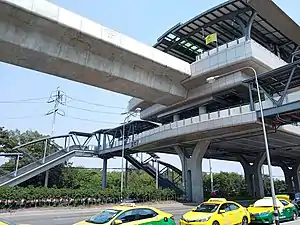 Khu Khot Station (Thai: สถานีคูคต, pronounced [sā.tʰǎː.nīː kʰūː kʰót]) is a BTS Skytrain station, on the Sukhumvit Line in Pathum Thani Province, Thailand.[1] The station is part of the northern extension of the Sukhumvit Line and opened on 16 December 2020, as part of phase 4. It is currently the only BTS station located in the province.[2][3][4]