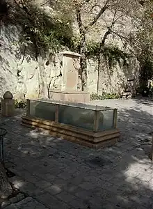 Khaju Kermani tomb is an Iranian tomb. It is located north of Shiraz, on Sabooy hill off the Shiraz–Isfahan road. It is in Allahu Akbar Gorge. His grave overlooks the Qur'an Gate. Roknabad spring passes near the tomb.[1]