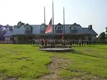 During World War II the Chickasaw Council moved their summer camp program to Camp Currier in Eudora, Mississippi due to the declining attendance and increased costs.[6] A Camp Director was still hired to maintain Kia Kima and during the 1940 summer six boys and two leaders camped there. In 1941 the Eastern Arkansas Area Council leased and operated Kia Kima, but later declined to purchase it citing the large financial drain it would place on their Council.[7] In 1947 a group of alumni formed the Kia Kima Klub and began fundraising to reopen the camp.[8] They were successful and Kia Kima reopened in 1948. The Chickasah Lodge in the Order of the Arrow was also founded at Kia Kima that year.