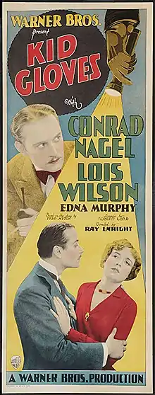 Kid Gloves is a 1929 American pre-Code part-talkie drama film directed by Ray Enright, and starring Conrad Nagel, Lois Wilson, Edward Earle, Edna Murphy, and Maude Turner Gordon. The film was released by Warner Bros. on March 23, 1929.[1][2][3]