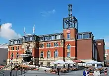In 1999, a comprehensive renovation of the station started. Among other things, it received a new lobby. The intermediate level of the historic hall was removed and thus the former ceiling height were restored. The pedestrian walkway to the bus station on the north side of the station was demolished without replacement and the pedestrian walkway to the Sophienhof shopping centre was replaced by a steel and glass structure. The redesigned station forecourt and the foyer with shops on the concourse were inaugurated for Kiel Week in June 2004. The imperial steps on the east side have been restored. Due to financial and technical difficulties, the reconstruction was interrupted several times and only concluded in May 2006[3] with the completion of a new station hall, only the cross-walk at the end of the platforms is still in its original condition although it has been refurbished. The total cost of the conversion amounted to €60 million. The cost for the work in the station hall was estimated to cost around €30 million.[3] From 2013, there will be a further renovation of the station with the creation of tracks 2a and 6a. Track 2a was built outside the train shed with a connection to the platform for tracks 1 and 2. Tracks 6a is also built outside the train shed with a connection to the platform for tracks 5 and 6. These are needed to cope with the additional traffic on the Kiel-Rendsburg (-Fockbek) route and the Kiel–Schönberger Strand route from 2014.[4]