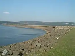 The design meant the loss of numerous farms and a school. About 95 people had been resident in the area prior to its development.[10] The former permanent way of the Border Counties Railway was also taken away through the development of the reservoir.